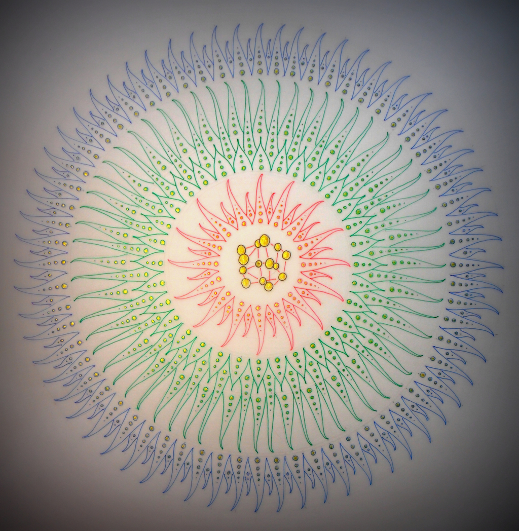 I sat down to create my first alchemical drawing. For me, no toads or symbols, but a reflection of the perfect inner Wisdom of Dharma. It did transpire at a later date that I became acquainted with a friendly dragon and toad, but this formed a part of the organic nature of my work - things come when they come.