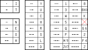 This shows the Morse code used for some time by the US Navy. Only one to four element codes are used. This means that in a number of cases symbols have to share a code, context should make clear what symbol is implied. This is shown in the table above by putting the symbols side by side.